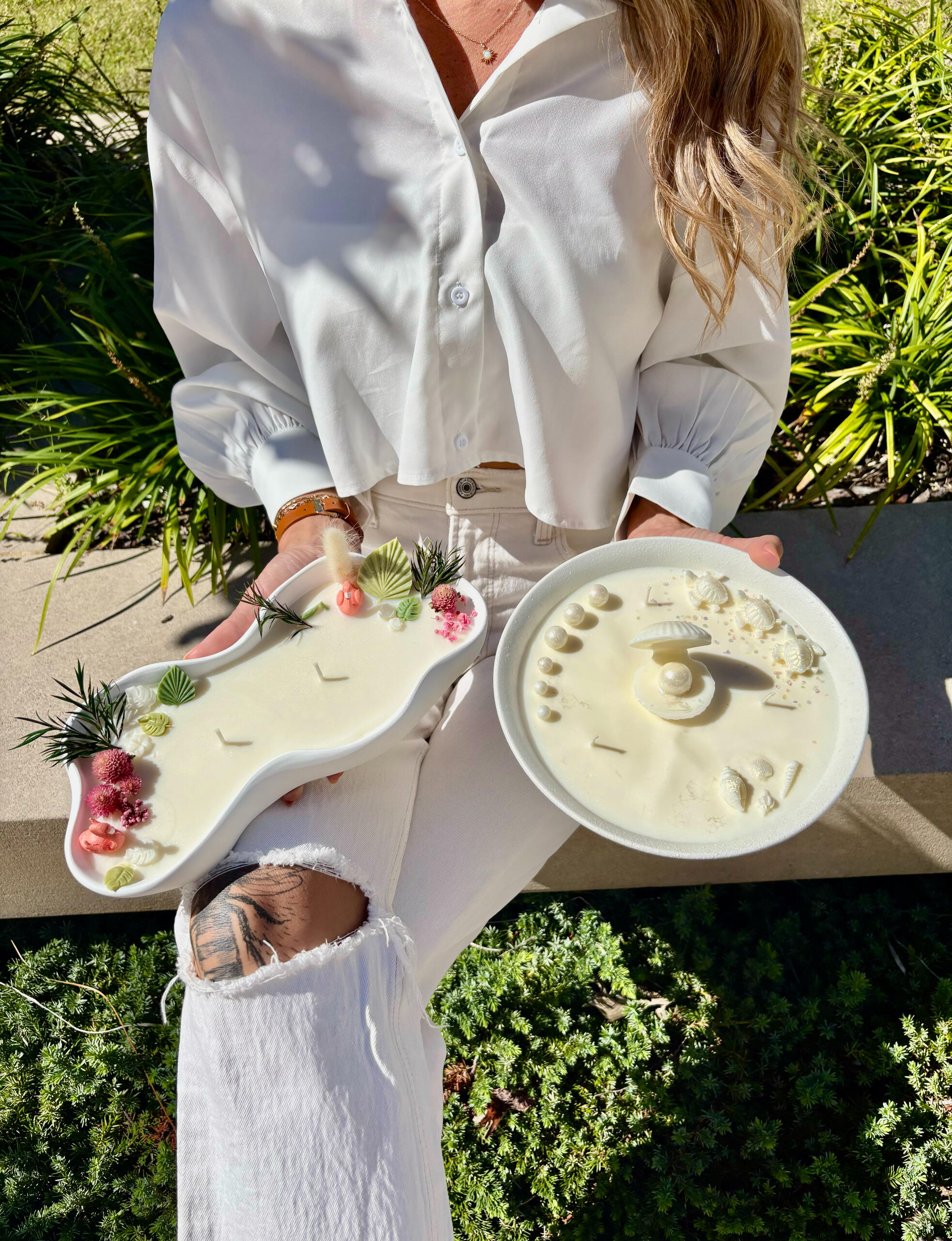 Each candle begins with two clean, non-toxic ingredients — chosen for their purity and safety. Designed and created by me, from the wax to the vessel, every candle embodies warmth, beauty, and a touch of serenity for your space.